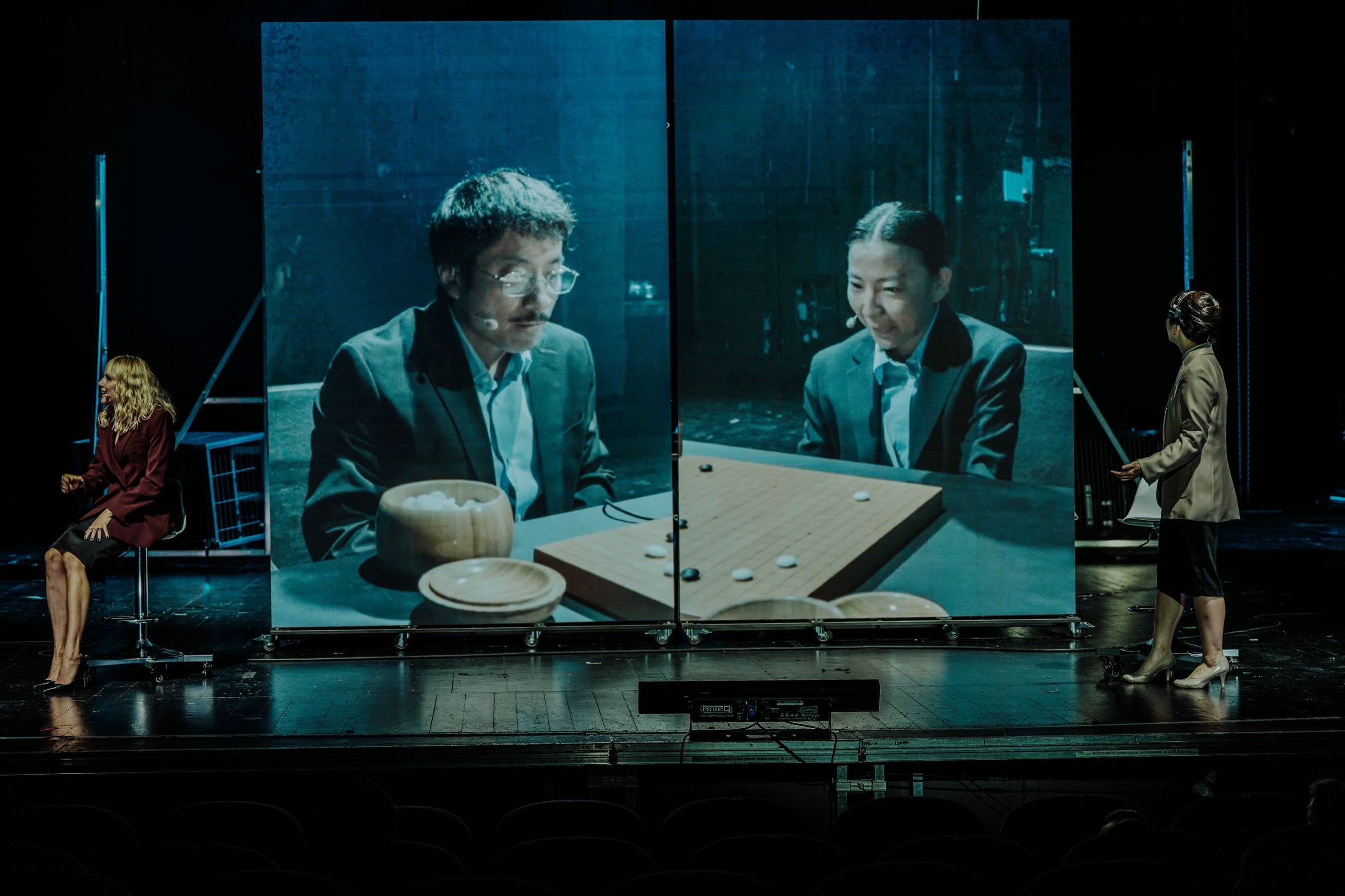 Year 2016, Seoul, a historic duel: Korean Go master Lee Sedol faces the computer program AlphaGo, powered by artificial intelligence. The human player carries the burden of representing all of humanity. The “epoch-making match” was organized by Google DeepMind, the creator of AlphaGo, to spark global media interest and pave the way for the company’s then-planned return to the Chinese market. A meticulously orchestrated PR campaign reached millions of viewers worldwide, turning the game into a powerful symbol of humanity’s defeat by AI. This theatrical performance reimagines the legendary duel as a ritual, drawing the audience into the act of creation while asking urgent questions about the social and environmental costs of technological progress.